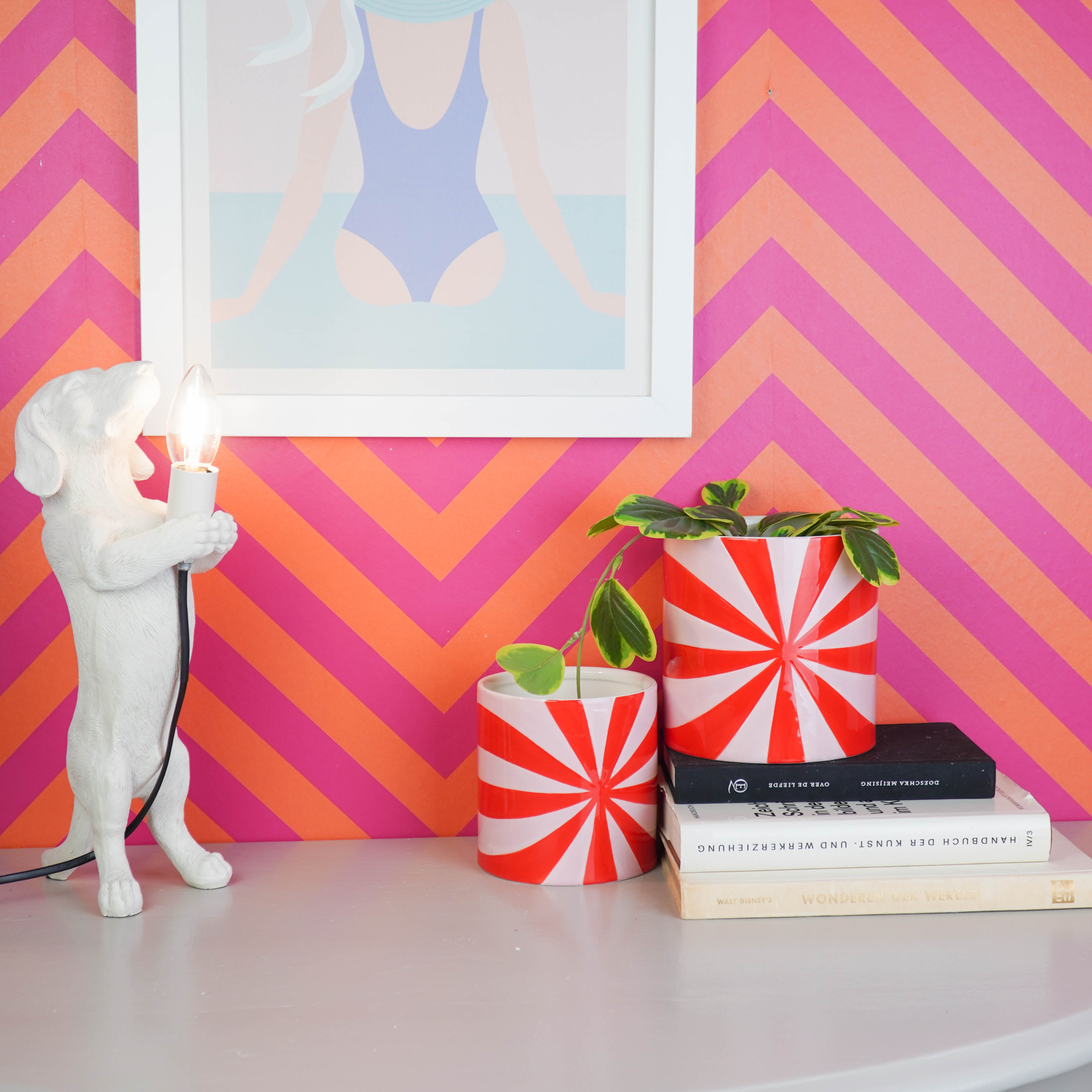 Pot - Planten Pot Hartjes - Dolomiet - Wit / Rood - 15.5x15.5x16 cm